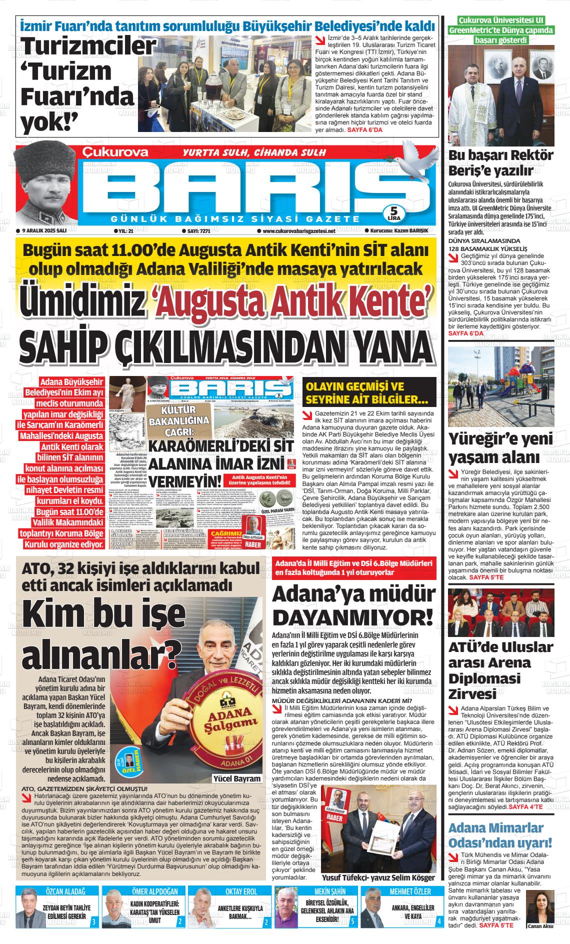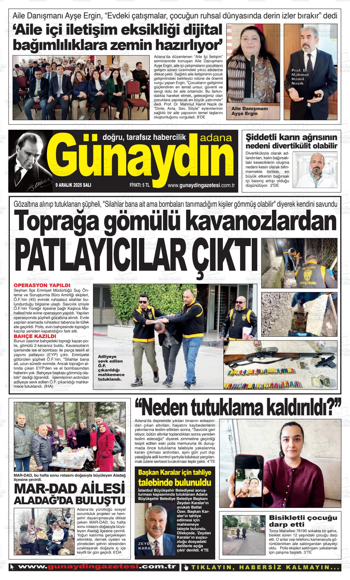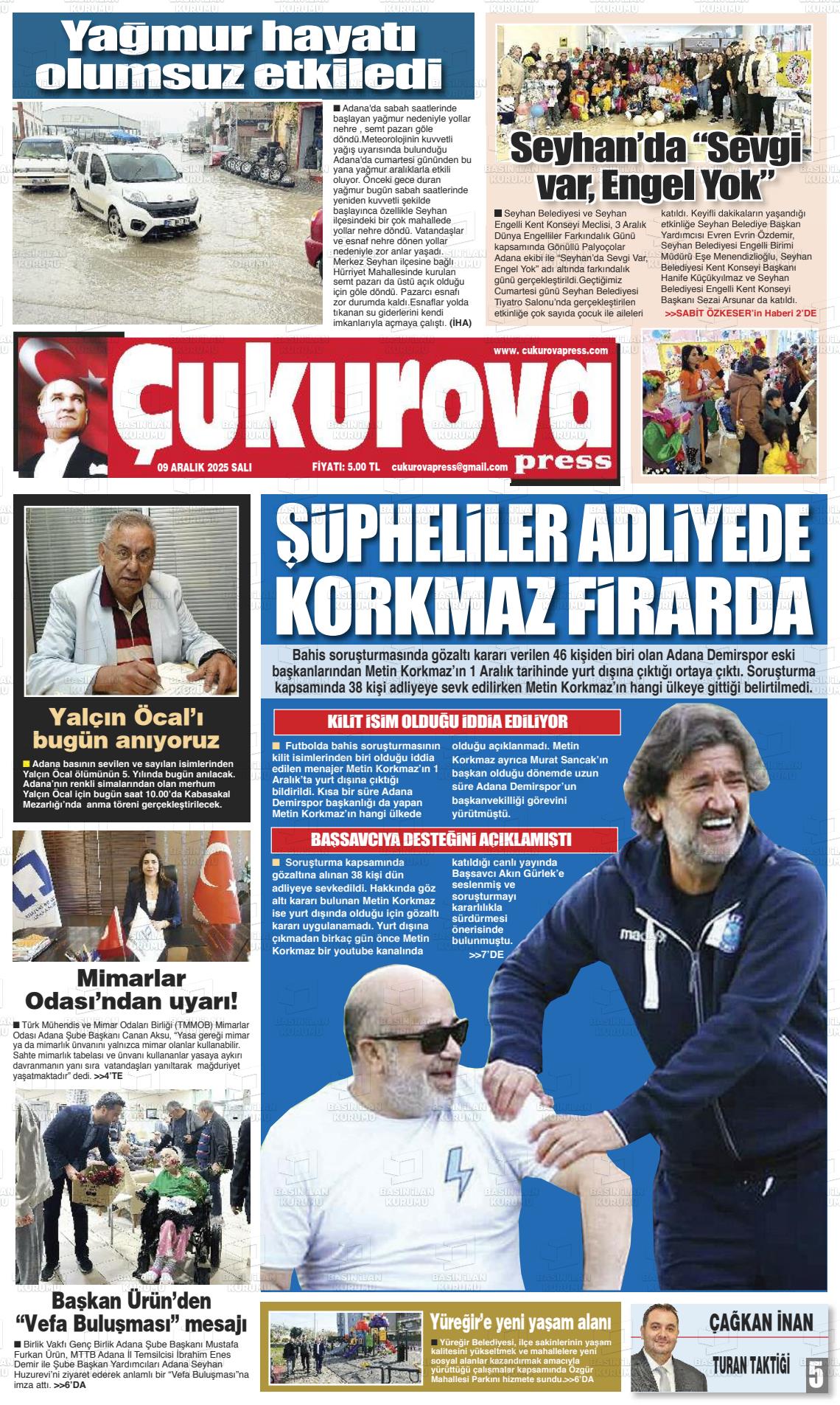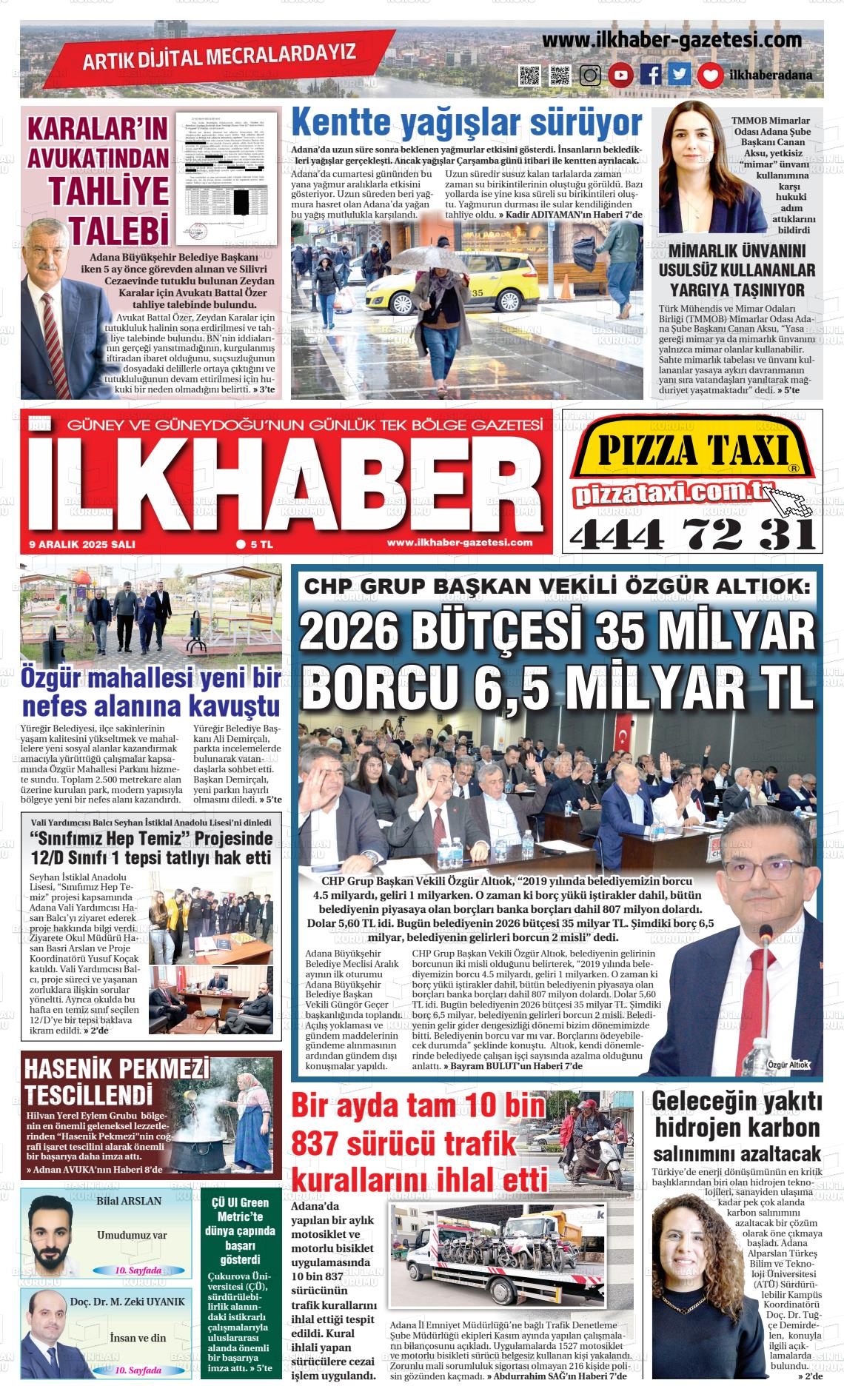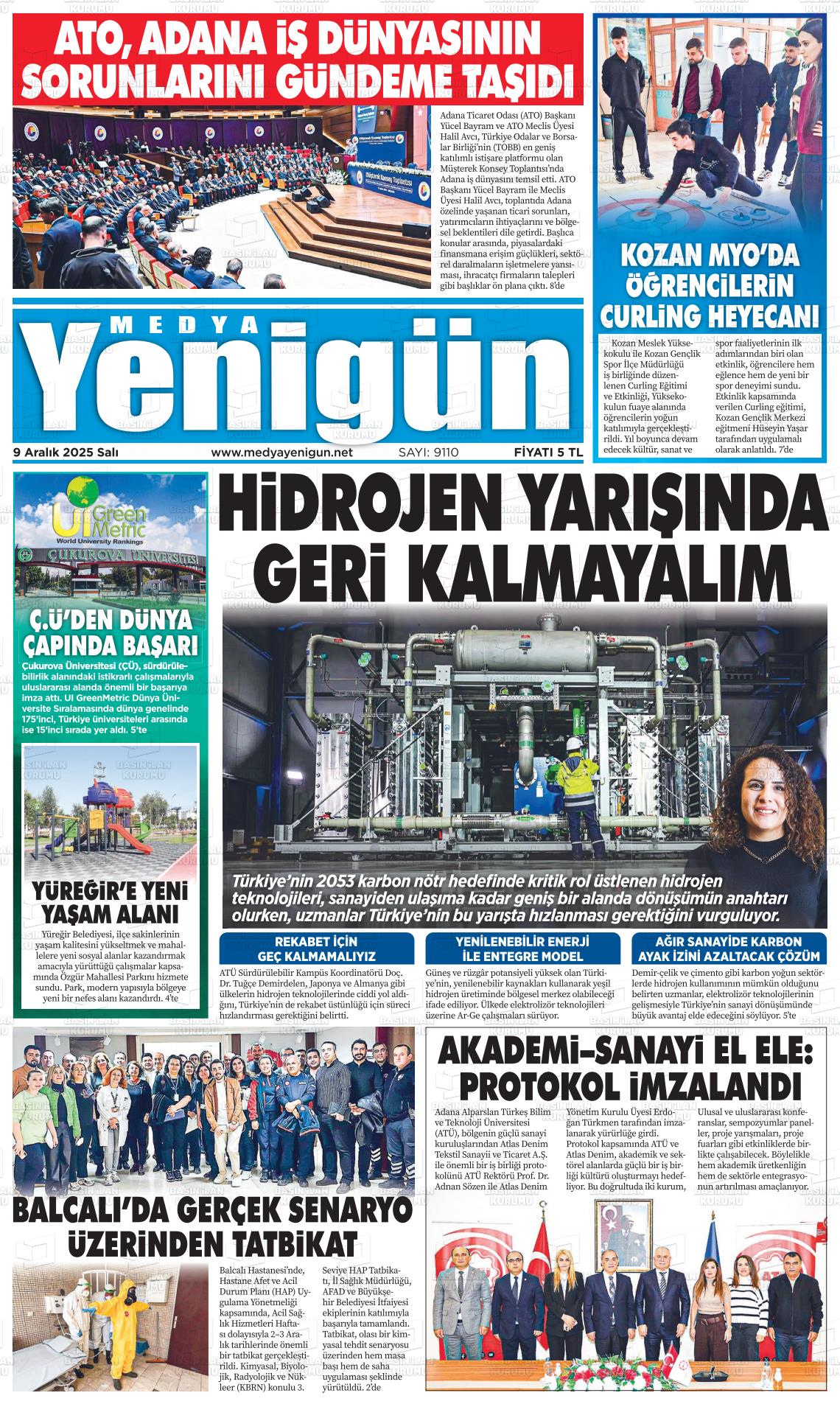 Adana Yerel Gazeteleri 10 Aralık 2025, Çarşamba Günü Manşeti