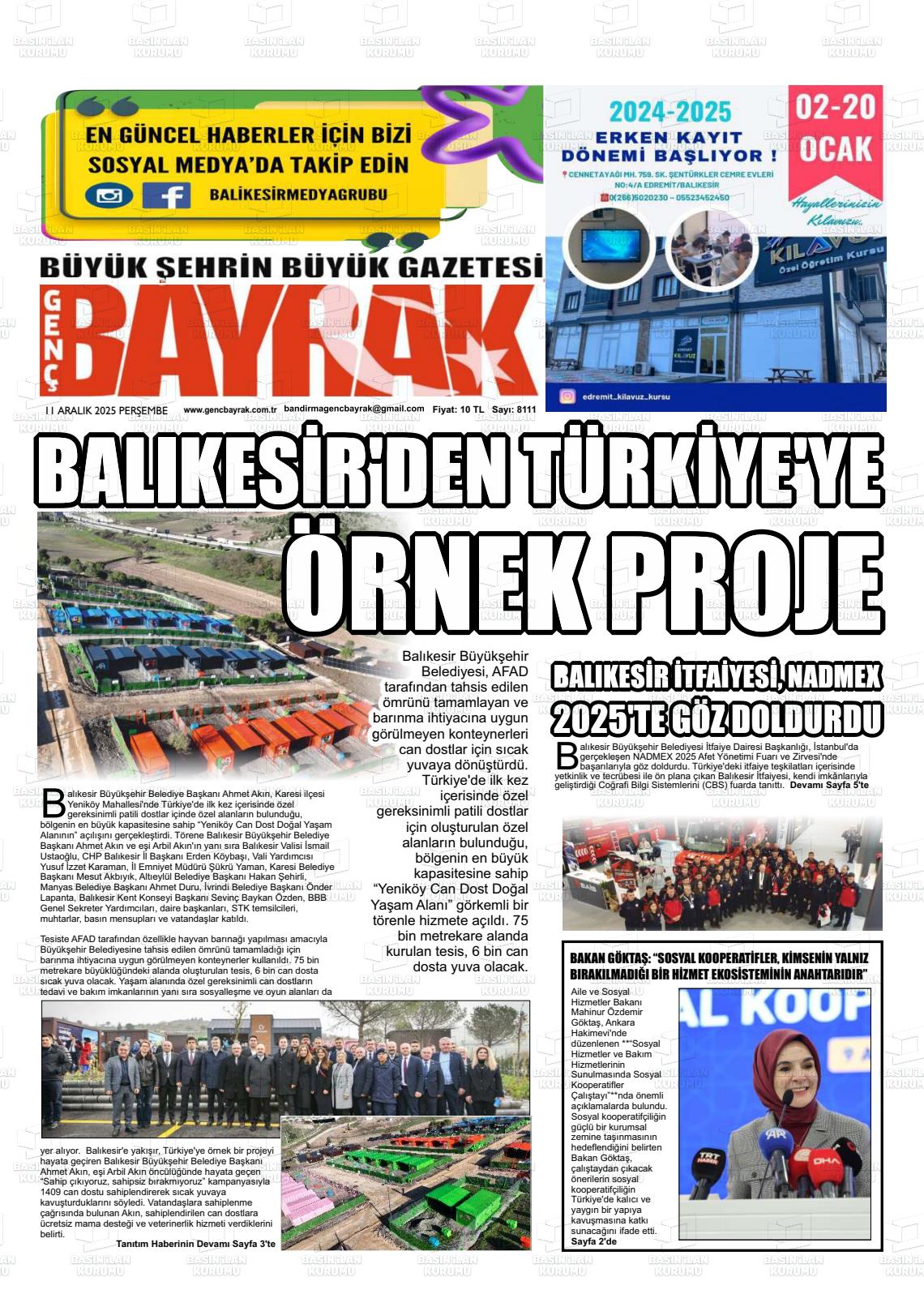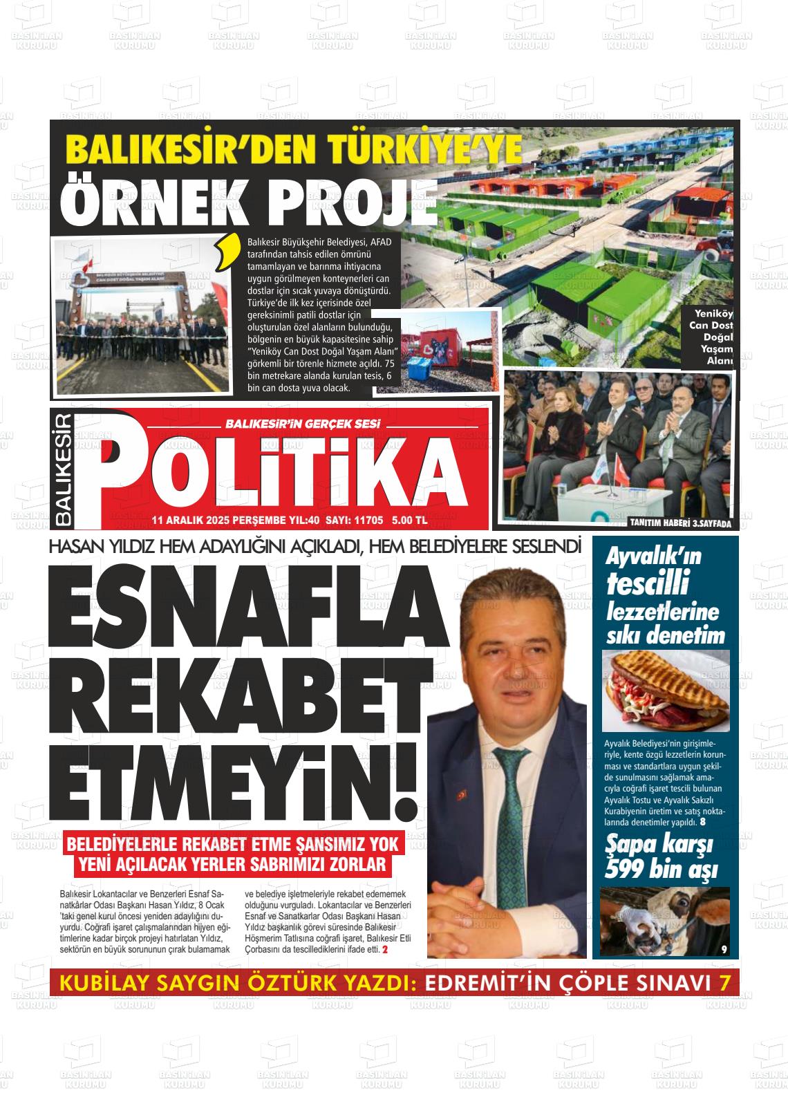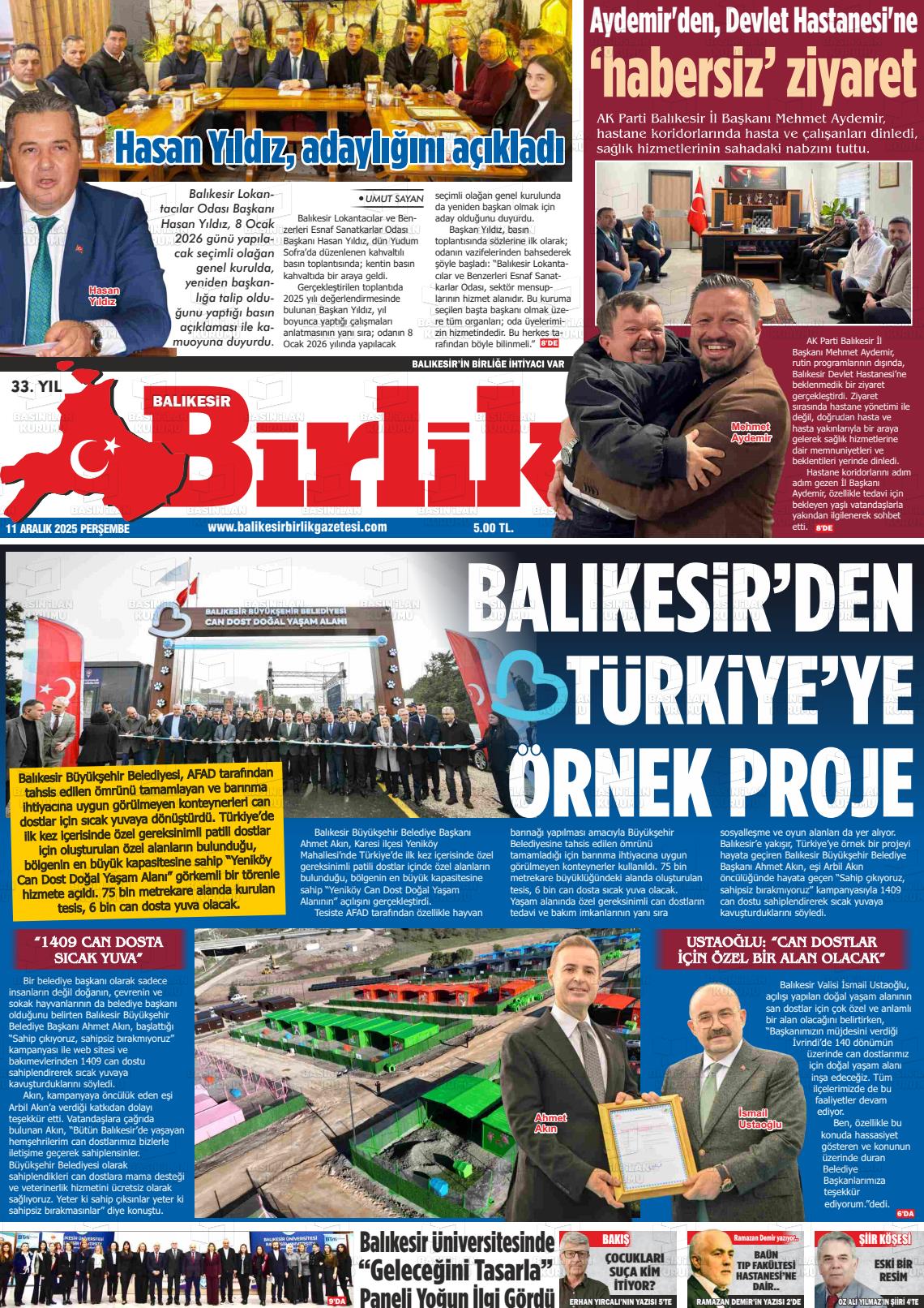 Balıkesİr Yerel Gazeteleri 11 Aralık 2025, Perşembe Günü Manşeti