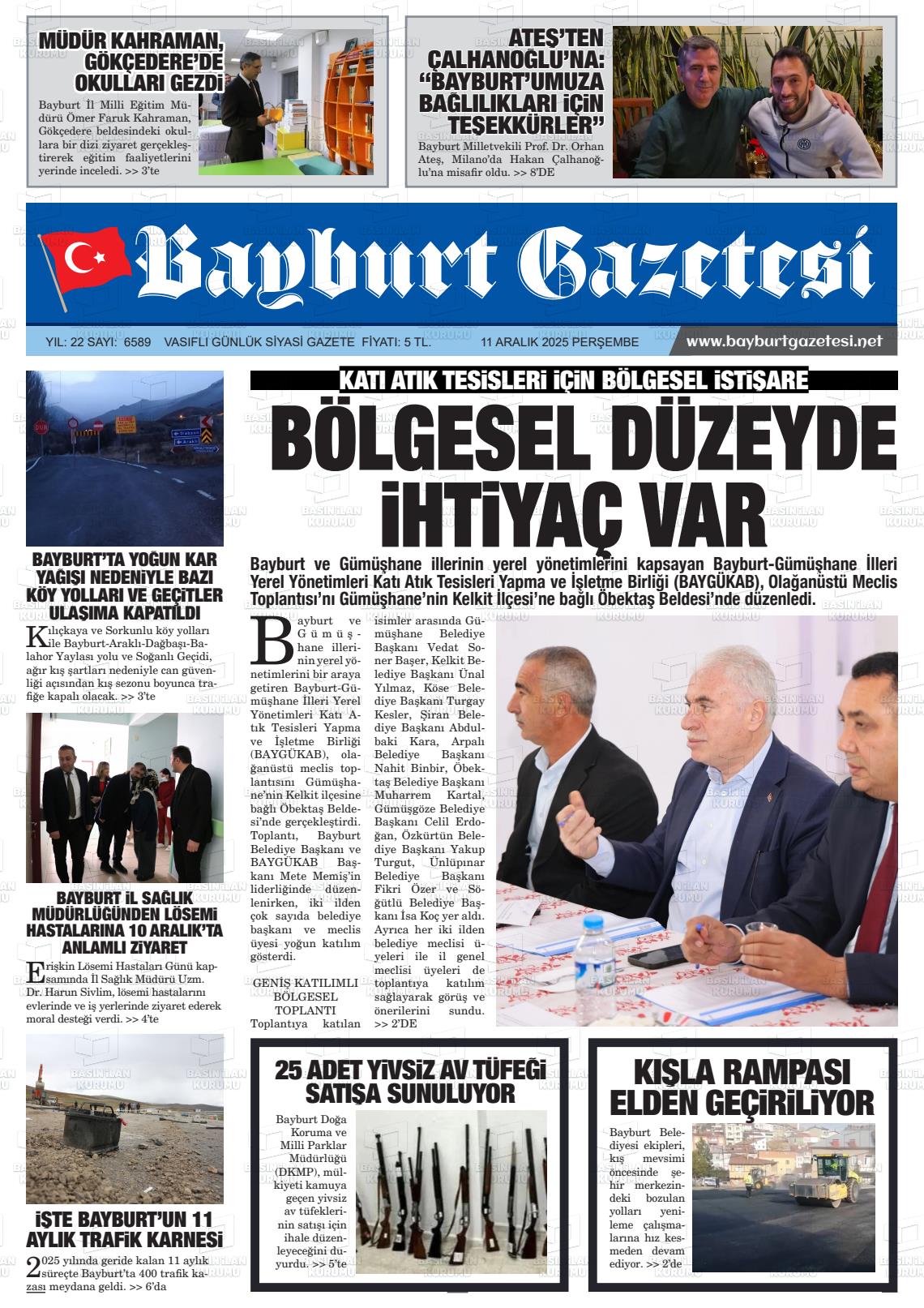 Bayburt Yerel Gazeteleri 11 Aralık 2025, Perşembe Günü Manşeti