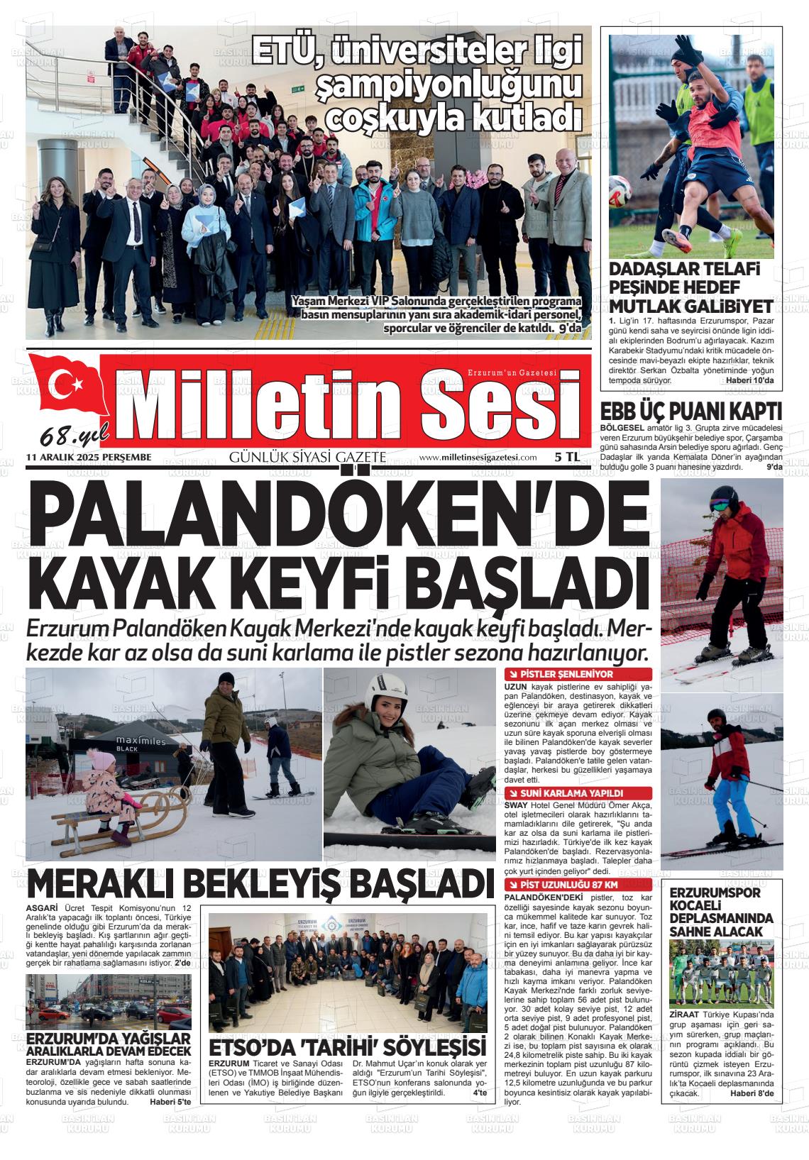 Erzurum Yerel Gazeteleri 11 Aralık 2025, Perşembe Günü Manşeti