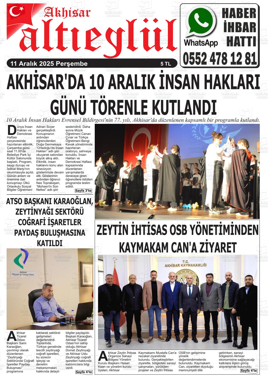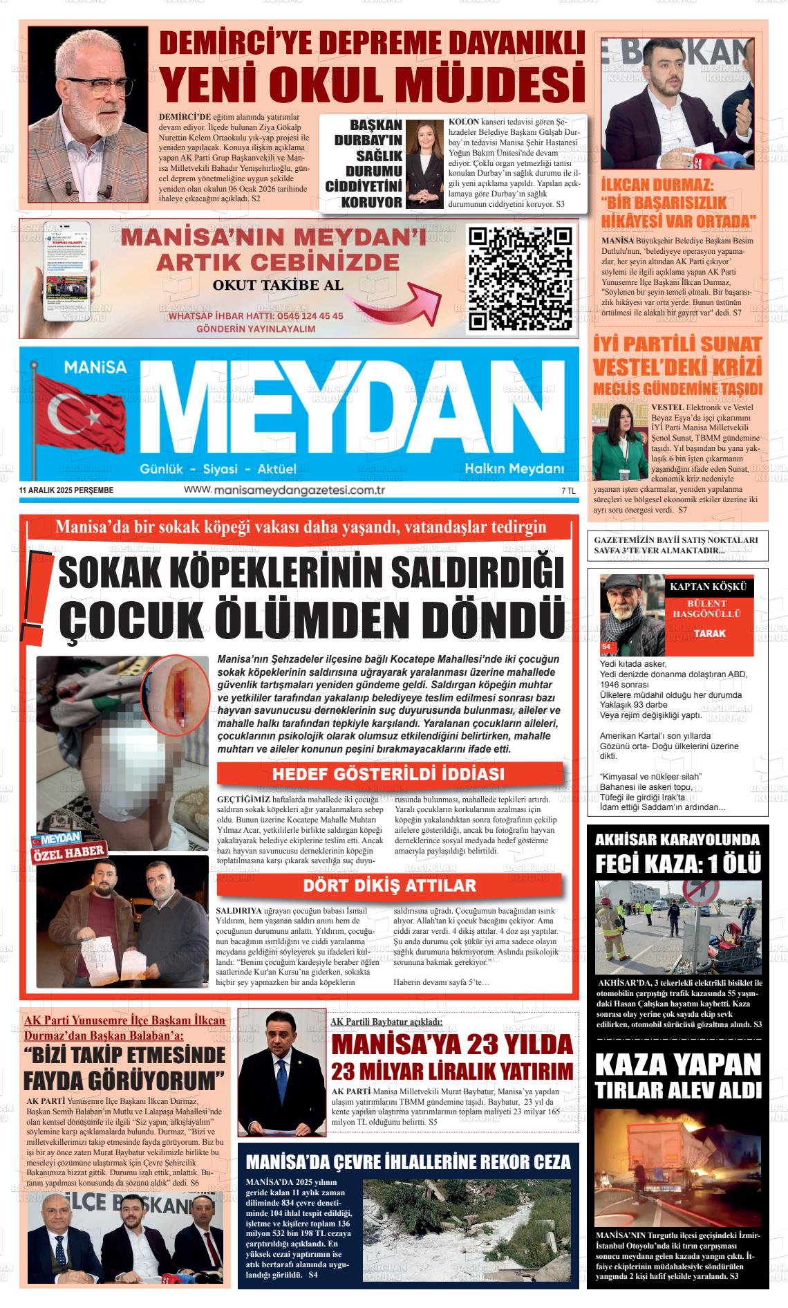 Manİsa Yerel Gazeteleri 11 Aralık 2025, Perşembe Günü Manşeti