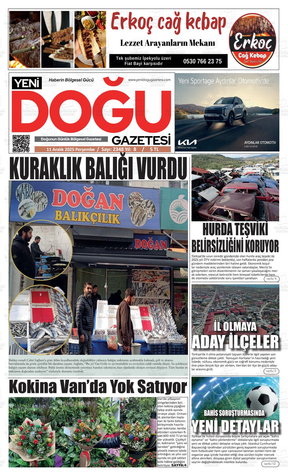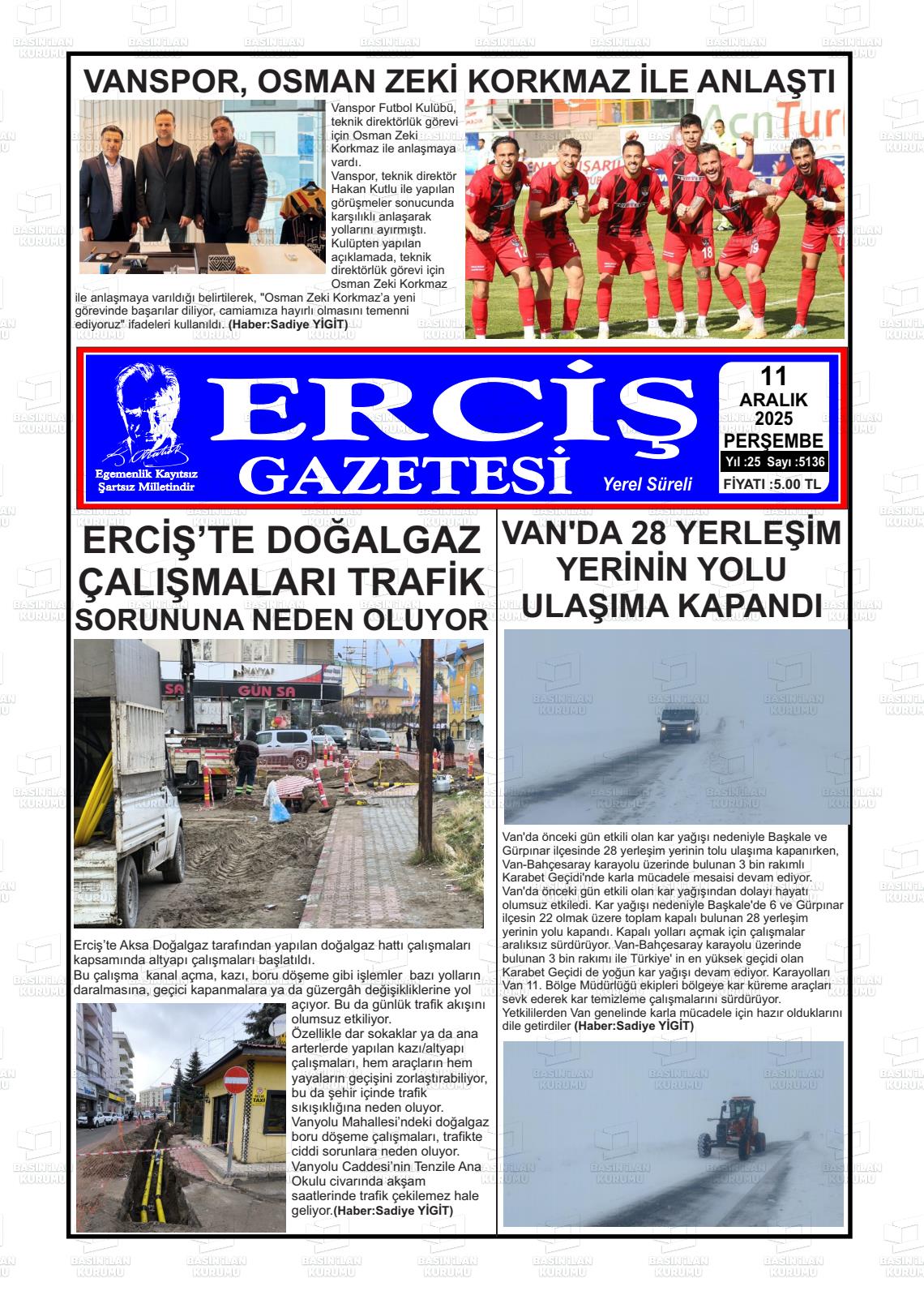 Van Yerel Gazeteleri 11 Aralık 2025, Perşembe Günü Manşeti